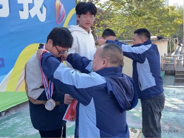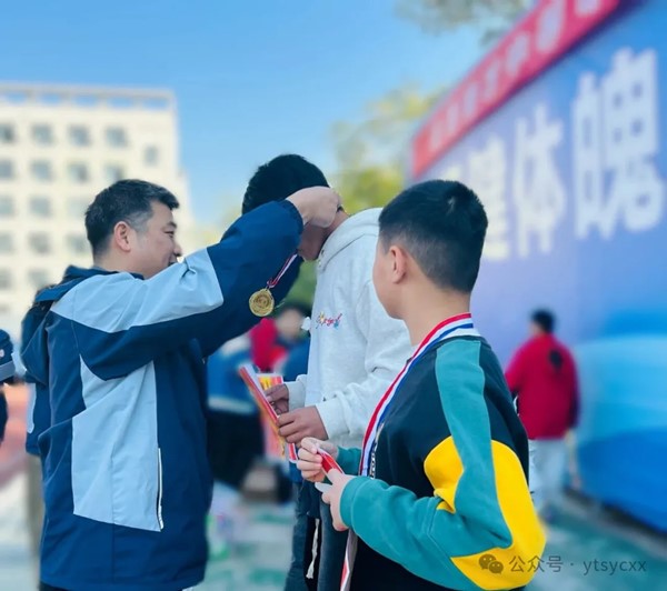 颁奖台上,随着激昂的音乐响起,获奖的运动员依次走上领奖台,脸上洋溢着喜悦与自豪,曾经挥洒的汗水,在这一刻收获到胜利的果实。在师生的热烈掌声中,行政班子成员亲自为他们颁发奖牌、荣誉奖状,并对他们的优异表现给予了高度评价。